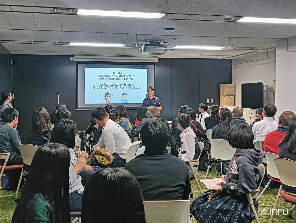 続いて、日本聴覚障がい者ラグビーフットボール連盟理事である大塚 貴之さんの講義では、初の試みとして、公募で選ばれた一般の参加者も受講。講義後は一緒にグループワークをするなど、世代を超えた交流も実施できました。