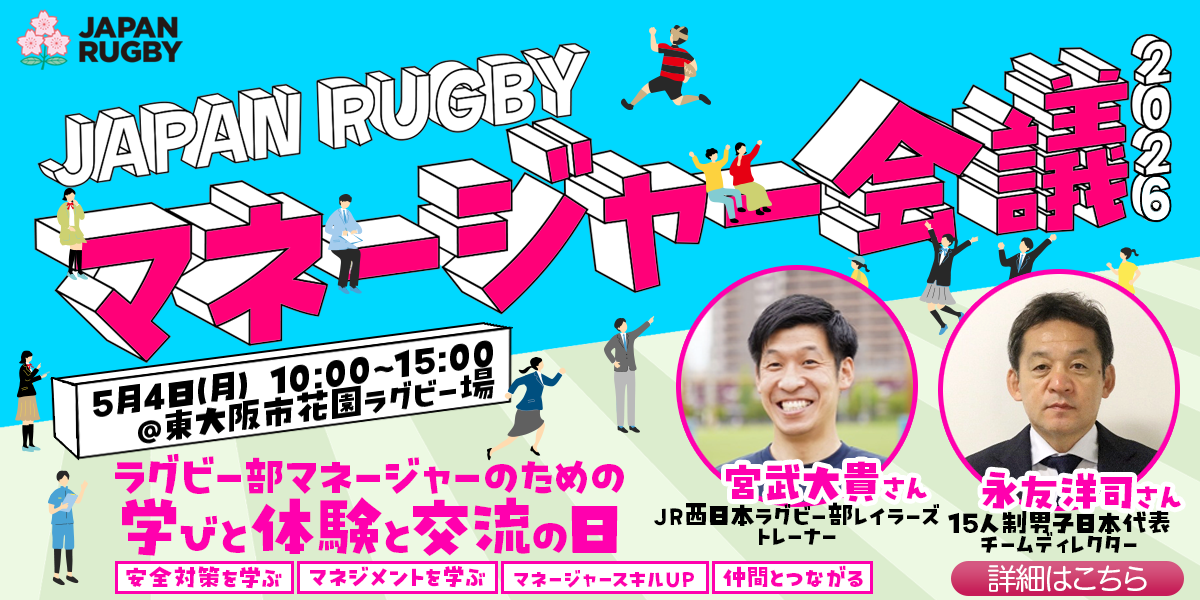 公益財団法人日本ラグビーフットボール協会は、「マネージャー会議 2026」の参加者募集について、下記のとおりお知らせいたします。