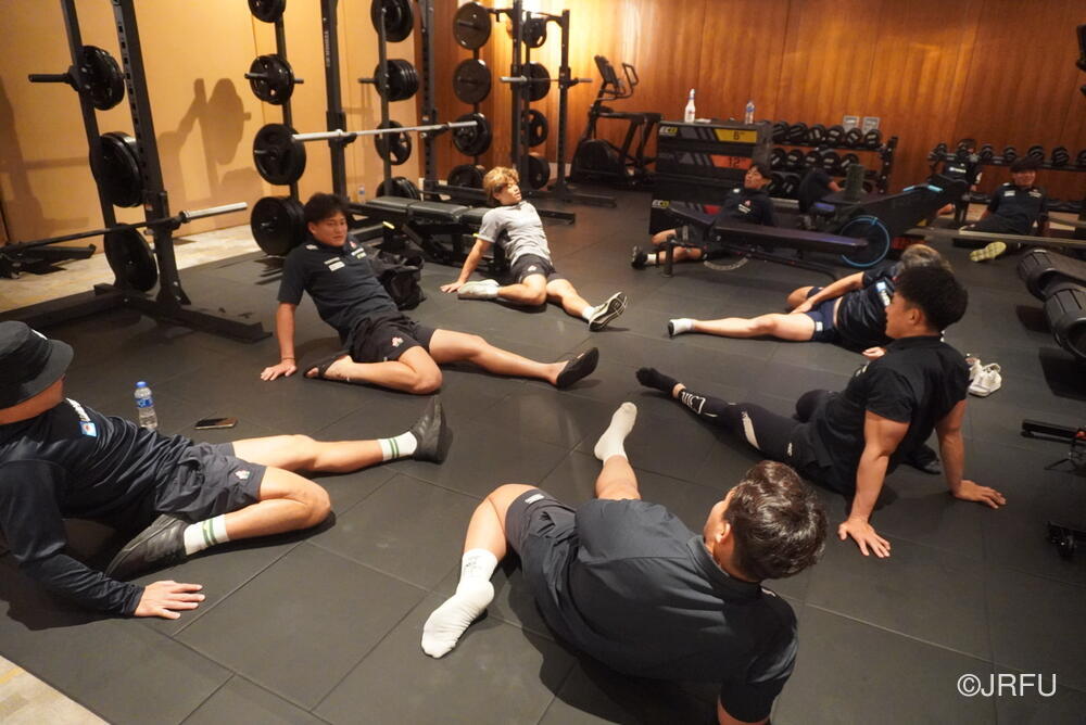 出発前の朝、まずはジムにてアクティブリカバリーを実施。身体を軽く動かして長時間の移動に備えた後、JAPAN BASEを後にしました。