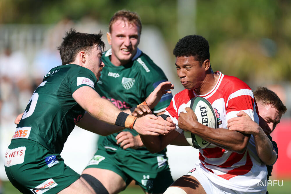 「(遠征を振り返って)日本では感じることができないフィジカルや荒さとかを初めて経験できました。(印象に残っているアドバイスは)田代さんが色々教えてくれて、とても勉強になりました。(改善していきたい部分は)相手によってスクラムを変えていく修正力やワークレートの部分は大学(京都産業大学)に帰ってからも意識してプレーしたいと思います」