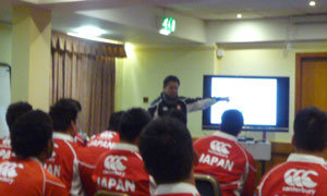 遠征スケジュール|高校日本代表メンバー|遠征レポート....2 ■2015年3月17日(火) 遠征6日目。 今朝もどんより曇り空でした。前日のリカバリーと休養で、時差ボケも解消され、コンディションも良くなっています。 今朝もS&Cトレーニングからスタートです。午前中はゲームレビューミーティングを行いました。 明日のゲームに向けての練習は今日が最後です。2戦目に向けてやるべきことを確認し合いました。 マッセルバララグビー場での最後の練習を終えて、全員で清掃をしました。 また、マッセルバララグビークラブの代表の方に対して感謝の言葉を秋山キャプテンが述べ、皆で書いた色紙をプレゼントしました。 午後は明日ゲームをするメゲットランドスポーツコンプレックスラグビー場でキャプテンズランを行い、グラウンドの感覚も確かめました。 明日はU19スコットランド代表にリベンジです! 本日の選手紹介は高速パス軍団、SHです。次の5つの質問に答えてもらいました。 1 自己紹介をお願いします。 2 高校代表に選ばれた時の気持ち。 3 チームにどのように貢献したいですか? 4 遠征の抱負。 5 5年後どうしていますか? 吉川浩貴(御所実業高校) 1 吉川浩貴です。 2 選ばれたことは、周りの方々のサポートのお陰なので、感謝しています。 3 チーム為、仲間の為に体を張って、責任を果たしたいです。 4 自分の将来に繋がる遠征にしたいです。 5 日本代表の9番を背中につけて戦っています。 田上 稔(佐賀工業高校) 1 田上稔です。 2 嬉しくて、夢のようでした。 3 ボールさばきを速くして、チームの勝利に貢献したいです。 4 JAPANの戦術を理解し、成長したいです。 5 日本代表として、グランドに立っていたいです。 齋藤直人(桐蔭学園高校) 1 齋藤直人です。3歳からラグビーを始めて、今年で14年目です。スポーツ観戦と犬の散歩が趣味です。 2 思ってもみなかったので、本当に嬉しかったです。今まで以上に努力します。 3 得意なキックと早い球さばきで、チームに貢献したいです。 4 外国人のパワーやスキルを知り、色々吸収したいです。 5 日本代表、もしくは、狙える位置にいたいです。 ■2015年3月16日(月) 遠征5日目。 本日もどんよりとした曇りの天気ですが、爽やかな朝を迎えました。 朝はプールで、前日の試合のリカバリーをしました。水に入ることによりあまり体に負荷を変えないようにしてゆっくりとほぐしていきました。 ホテルには最新のトレーニング機器とプールがあり、選手のコンディション作りには最適な施設です。 その後、選手ミーティングを実施しました。 午後はスコットランドラグビーの聖地「マレーフィールド」を見学させていただきました。 スコットランド協会の方の案内で、VIPルームやスコットランド代表のチェンジングルーム、そしてグラウンドにも入れていただき、選手は大興奮でした。 朝のプールリカバリー。 移動車内からのエディンバラ市内。 聖地 マレーフィールドに到着。 本日の選手紹介は、気は優しくて力持ち、PRです。次の5つの質問に答えてもらいました。 1 自己紹介をお願いします。 2 高校代表に選ばれた時の気持ち。 3 チームにどのように貢献したいですか? 4 遠征の抱負。 5 5年後どうしていますか? 黒澤 桂(深谷高校) 1 黒澤桂です。ラグビー歴は10年です。185cm・106kg。 2 とても名誉なことで、嬉しかったです。チームに貢献したいと思いました。 3 グランドの中も外も、代表としてのプライドを持って行動したいです。 4 精神的にも、肉体的にも成長したいです。良いプレーを学びたいです。 5 日本代表としてピッチに立っていたいです。 土山勇樹(東福岡高校) 1 土山勇樹です。 2 4試合、勝つという気持ちです。 3 ブレイクダウンでのボールの確保、近場でのアタックとディフェンス、スクラムを安定させて、相手ボールではプレッシャーをかけます。 4 ラグビー理解を深めて、考えながらプレーできるように成長したいです。 5 大学でレギュラーとなり、日本代表としてプレーしたいです。 三竹康太(大阪桐蔭高校) 1 三竹康太です。小学5年生からラグビーをしています。 2 代表に選ばれたかったので、とても嬉しかったです。 3 スクラムの安定とそこでプレッシャーをかけてマイボールにします。 4 海外の選手の力強いプレーを肌で感じ、今後のラグビー人生につなげて行きたいです。 5 日本代表としてプレーしたいです。 當眞 琢(コザ高校) 1 當眞琢です。小学校から中学校まで相撲をしていました。 2 代表候補までいって代表になれなかった父、兄がいたので、代表に選ばれた時は、夢が叶い嬉しかったです。 3 ボール争奪にて、チームを救うプレーをしたいです。 4 4戦全勝して、このチームで遠征できて最高だったという遠征にしたいです。 5 努力して、日本代表になっていると思います。 ■2015年3月15日(日) 遠征4日目。 本日はいよいよU19スコットランド代表と試合です。 本日も早朝からジムでトレーニング。ストレッチと体幹トレーニングを中心に行いまし