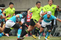 筑波大学 7-62 サントリーサンゴリアス 【1回戦/2015年2月8日(日) /東京・秩父宮ラグビー場】 所属リーグではともに5位と振るわなかった両チーム。筑波大学は全国大学選手権で決勝まで上り詰めての日本選手権出場。一方のサントリーサンゴリアスはワイルドカードトーナメントを勝ち抜いての出場だったが、筑波大学・古川拓生監督が試合後「スコアの差が力の差」と語ったように、前後半に5トライずつあげたサントリーがトップリーグの貫録を示した。 80分の経過を告げるホーンが鳴った時、筑波が最後のアタックを続けていた。中央付近で密集を連続支配した後、4年生FB山下一がラインブレイクして快走、同級生のNO8山本浩輝に繋いで最後に1トライを報いた。スタンドが最も沸いた瞬間だった。山下は、試合を通じて思い切りの良いタックルを繰り返し、この日の筑波で最も存在感を示していた。試合後、バックスリーダーとして出た記者会見では涙しながら悔しさを滲ませていたこの大型バックスは、同級生で高校時代の活躍から当時最も注目を浴びていたWTB竹中祥よりも早く頭角を現し、アウトサイドバックスとして4年間活躍した。その竹中も、大学のシーズンでは途中出場が多かったが、この日は先発し、後半24分までプレーした。やはり途中で退いたFL水上彰太ゲームキャプテンやHO村川浩喜など、チームを大学準優勝まで引き上げた4年生を中心に、サントリーのシェイプアタックに対しファーストタックルを決め続けたが、セカンドフェーズ以降で徐々に食い込まれ、崩されていった。「チャンスは少ない」(古川監督)ことは覚悟の上だったが、サントリーの強いプレッシャーを受け続け、最後に奪ったトライの場面以外にはトライチャンスを生み出せず。守っては、サントリーSOトゥシ・ピシや、豪NSWワラタス入りが報じられたCTB松島幸太朗らのキレとスピード溢れるランに付いて行けなかった。 そのピシや松島を後半から下げて、トップリーグではファーストジャージーを着る機会が限られていた選手を多く起用したサントリー。大久保直弥監督の期待に応えたWTB長友泰憲、ジャスティン・ダウニーと仲宗根健太の両FLやNO8西川征克らで構成したバックロー陣、CTB中村亮土らが活躍した。後半途中からSOに回った中村は、「今日はSOの方がチームにフィットしていたようだ」(大久保監督)という言葉通り、後半16分にはラインアウト後のラックから出たボールを受けると鋭く切れ込み、自らトライもマークした。試合後記者に日本選手権に向けた取り組みを問われ、「獲りたい!」と即答したLO真壁伸弥主将は、「トップリーグではやや考え過ぎの感があった。ボールへの反応とか、激しくプレーする気持ちを出していきたい」と話し、サントリーは2季ぶりの日本選手権奪回に向けた好スタートを切った。 筑波大学の古川監督と山下バックスリーダー 筑波大学 ○古川拓生監督 「本日はありがとうございました。スコアがチーム力の差を表しました。戦う前から、決して多くはないチャンスに筑波のプレーを出せるかと臨みました。セットプレーやターンオーバーのこぼれ球への反応などを狙っていましたが、社会人が上回ったと思います。サントリーさんは我々のはるか上を行っていました。しかし、学生もあきらめることなく、最後までやってくれて誇りに思います」 ──今日はキックを蹴らないように指示したのか? 「攻めている中で、わずかに空くスペースを狙い続けるよう指示していました。開始5分で内側に穴があったのですが、思い切ってのコールがなかったのが残念です」 ──福岡選手は? 「まだ負傷が癒えていないので、出場はなしとしました」 ○山下一バックスリーダー 「本日はありがとうございました。選手、スタッフ皆が勝ちに行ったゲームでした。悔しいですけれど…、このチームでやれた一年を本当に誇らしく思います」 ──最後に山下君の突破からトライを獲ったが? 「何回もトライを獲られたのですが、そのたびに円陣の中で皆が『まず一本獲ろう』と言ってくれて、それが、あの一本につながったと思います」 ──社会人の違いは? 「やりきる強さではないかなと思います。サントリーさんのアタックはスカウティングどおり、順目にしつこくアタックとわかっていましたが、最終的にはこの点差をつけられました。やり切る強さ、フィジカルの差も感じました」 ──相手の同学年がいたが? 「やはり、キレだとか、コンタクトの場面でのかわし方、強さ、スピードがありました。自分と同学年とまったく思えなかったほどではなかったけれど、高いスキルをもつ選手だと感じました」 サントリーサンゴリアスの大久保監督と真壁キャプテン サントリーサンゴリアス ○大久保直弥監督 「今日は雨の中、ありがとうございました。まあ、僕らとしては、日本選手権を取るためのスタートでした。とにかく、久しぶりにファーストジャージを着た選手が、自分のやるべきことを激しくやってく
